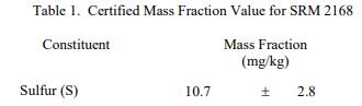 已知或可疑的偏倚來源已被調查或考慮 [2]。認證值是根據 NIST 和合作實驗室使用表 4 中所示測試方法進行的分析結果對真實值的當前最佳估計。